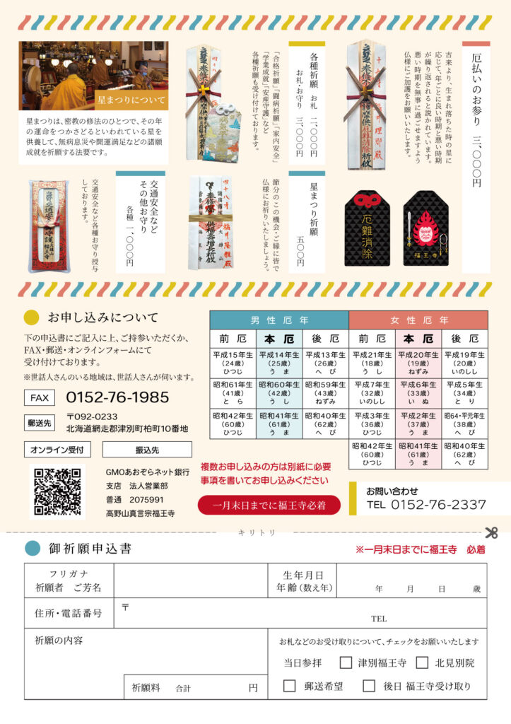 2/11日 日 節分 星まつり(開運厄除け祈願) 北見別院 11時