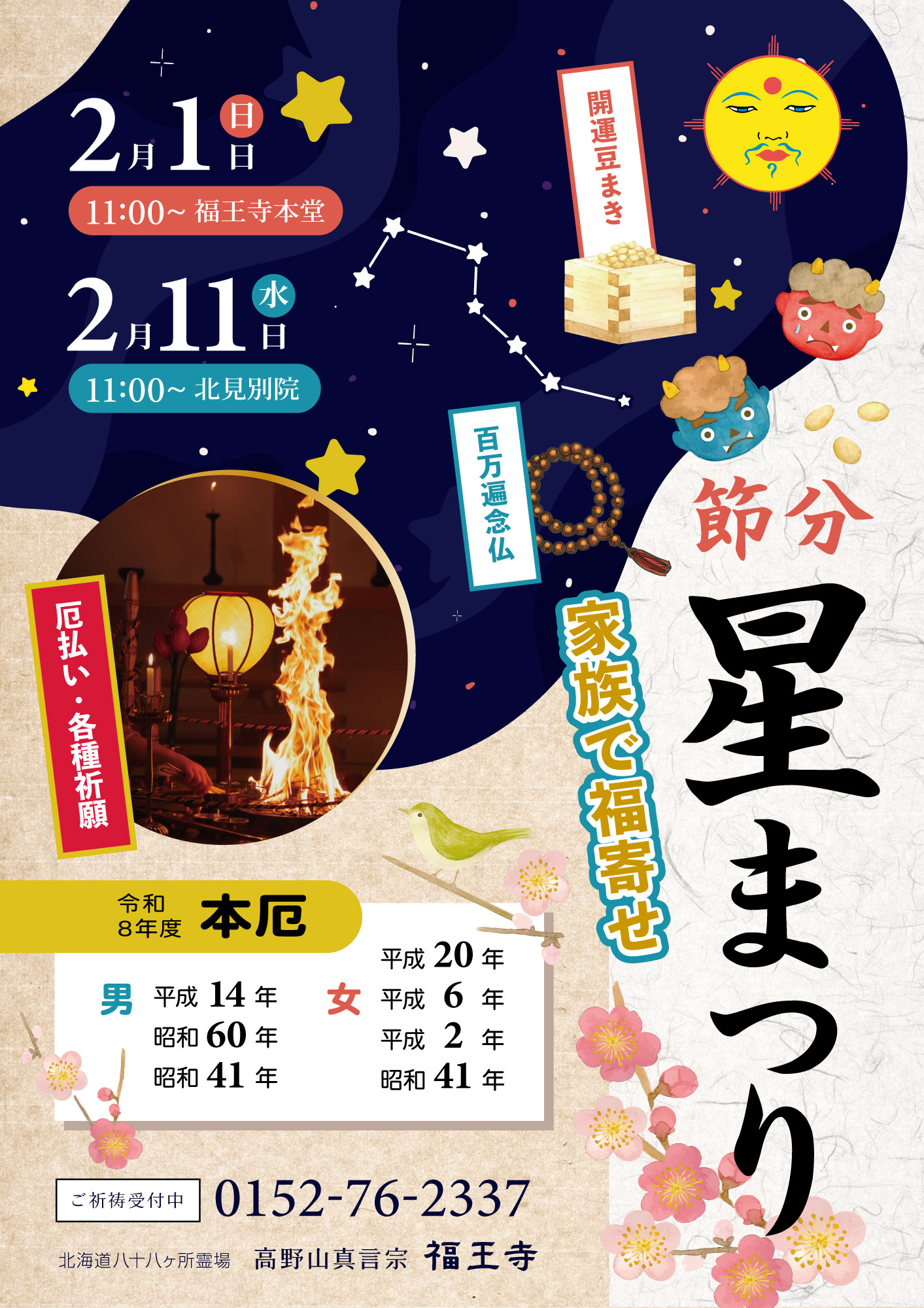 2/1日 日 節分 星まつり (開運厄除け祈願) 福王寺 11時